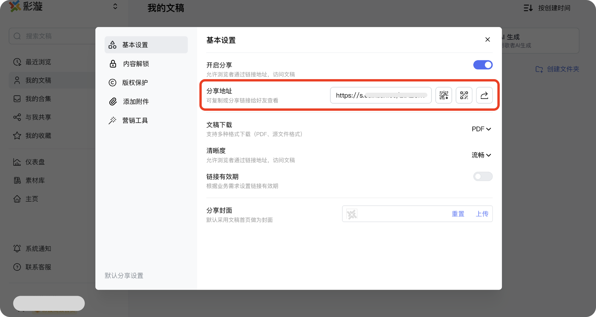 上传完成后,点击「分享」,即可通过链接、小程序、二维码的方式将内容发给他人。